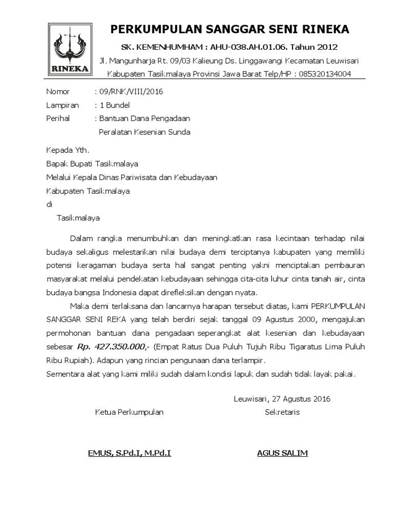 Contoh Proposal Bantuan Alat Musik Sanggar Rineka Pdf